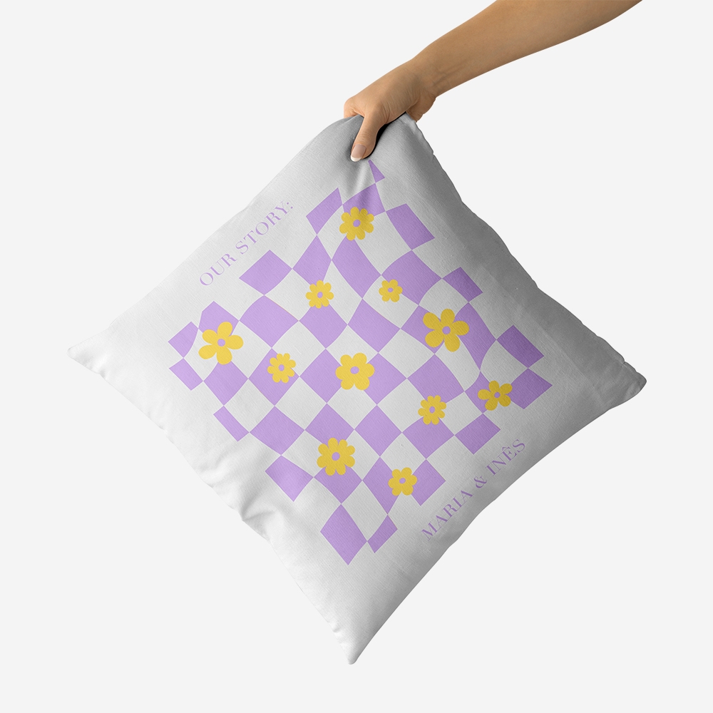 Entre o lilás suave e o amarelo vivo, esta almofada traz a leveza da primavera diretamente para o teu interior. Um jogo de formas geométricas que quebra a monotonia e transforma qualquer canto num cenário digno de uma revista de design.